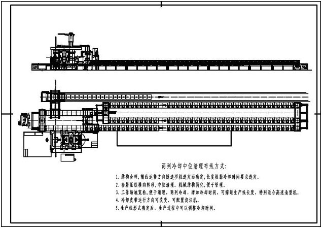 5.1 結(jié)構(gòu)合理,輔線運(yùn)轉(zhuǎn)方向隨造型機(jī)選定而確定,長度根據(jù)冷卻時間要求選定。