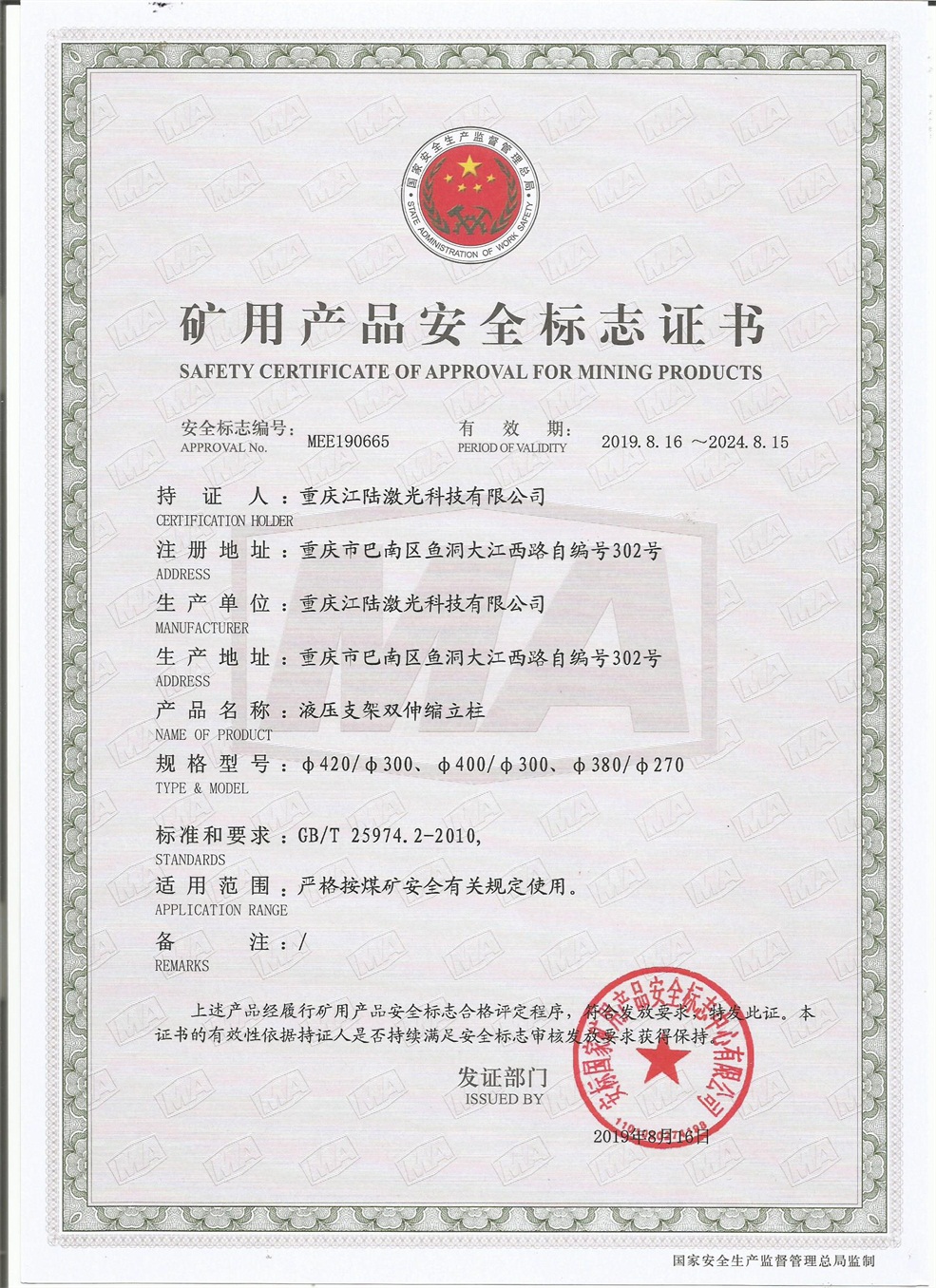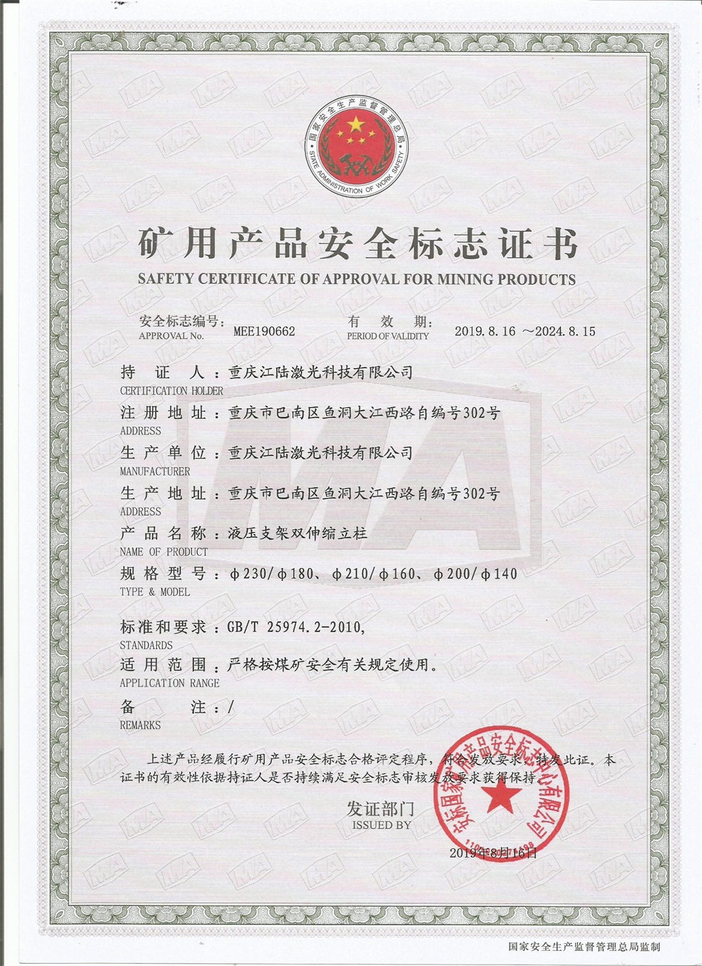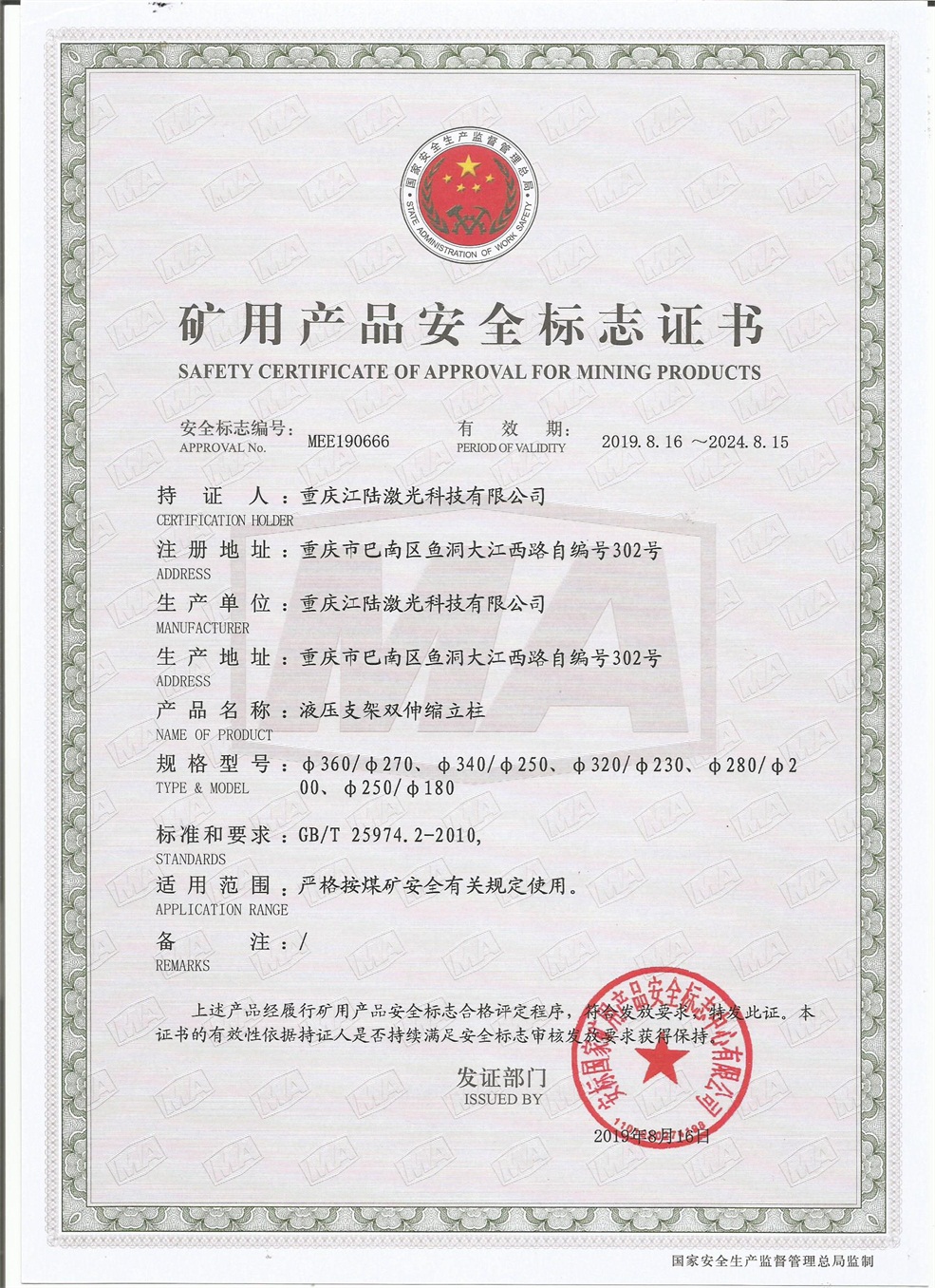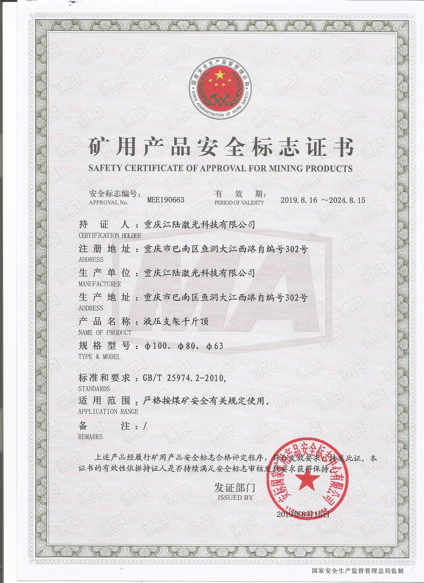礦用產(chǎn)品安全標志證書